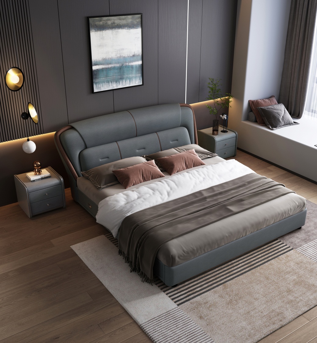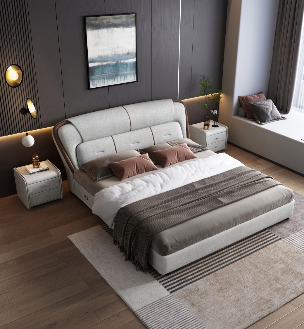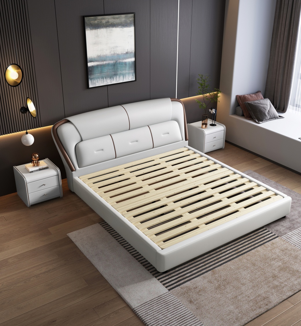 • 面料:西皮/金刚皮/科技布+靠包填充:海绵+框架:桉木+标配床板:松木排骨架