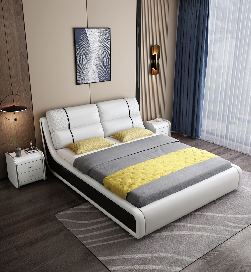 • 面料:西皮/金刚皮/科技布+靠包填充:海绵+框架:桉木+标配床板:松木排骨架
