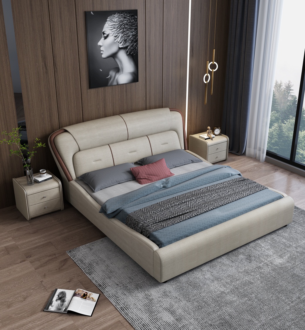 • 面料:西皮/金刚皮/科技布+靠包填充:海绵+框架:桉木+标配床板:松木排骨架