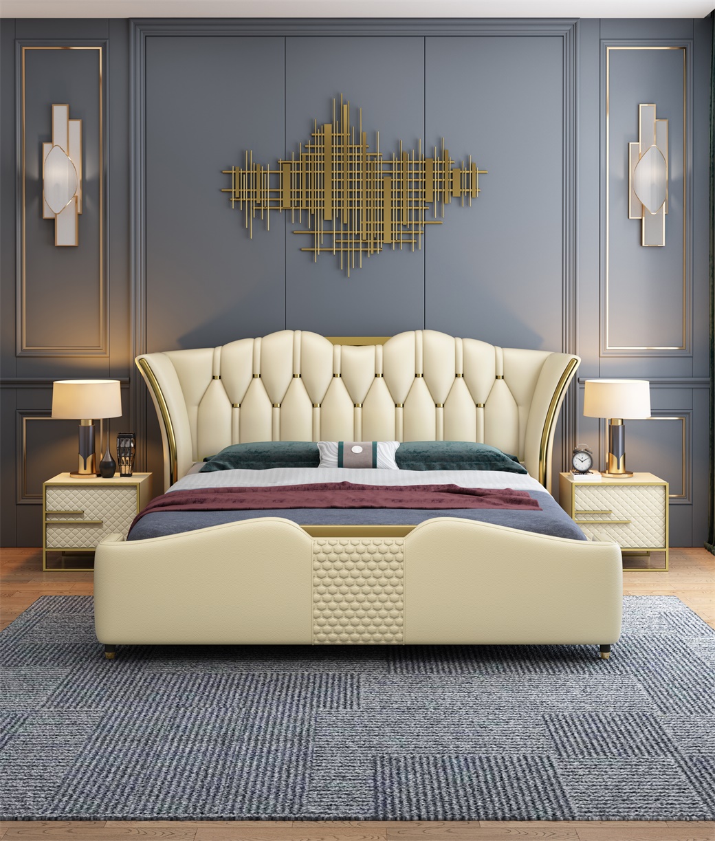 • 面料:金刚皮+靠包填充:海绵+框架:桉木+标配床板:排骨架A床板
