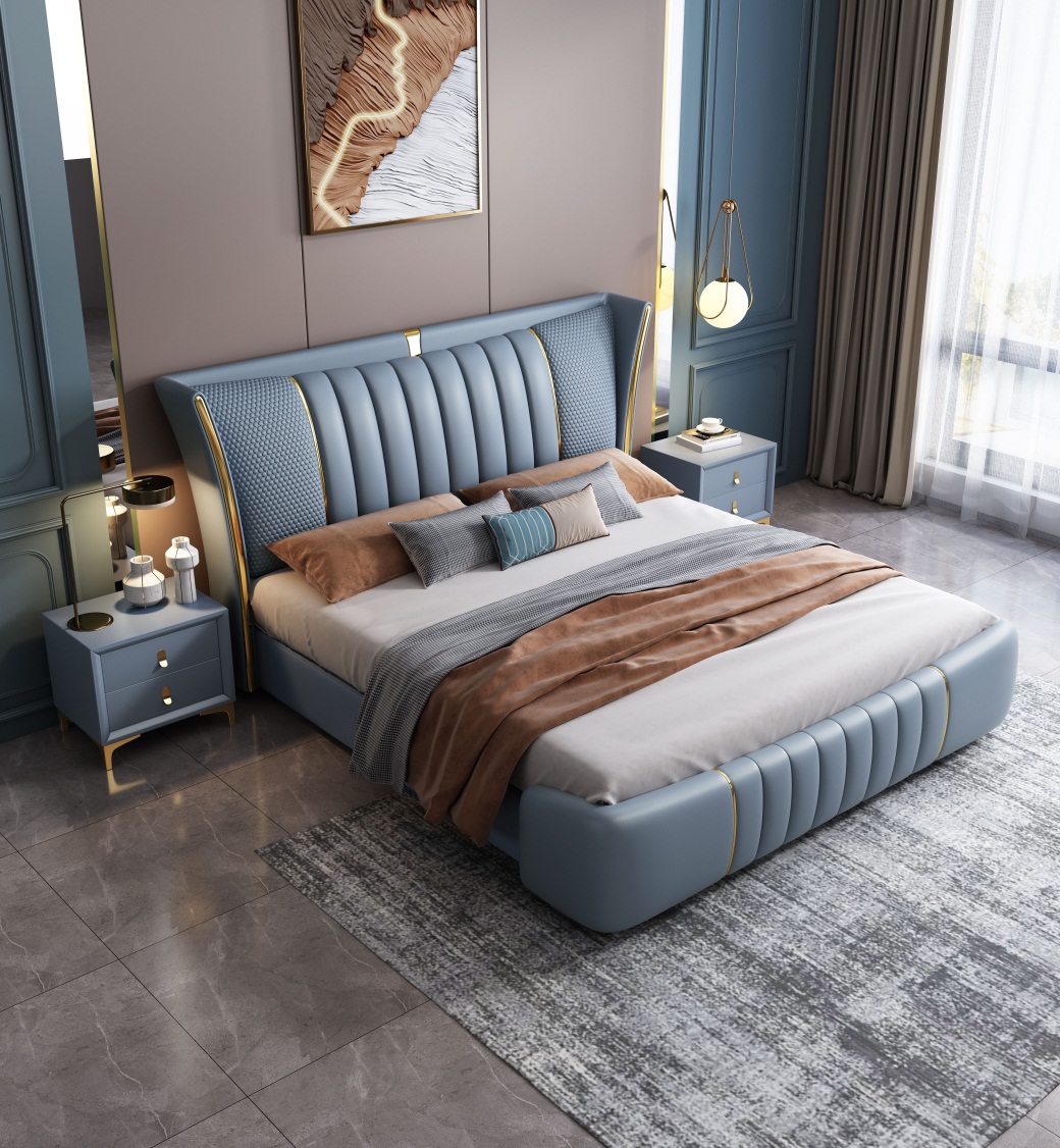• 面料:金刚皮+靠包填充:海绵+框架:桉木+标配床板:排骨架A床板