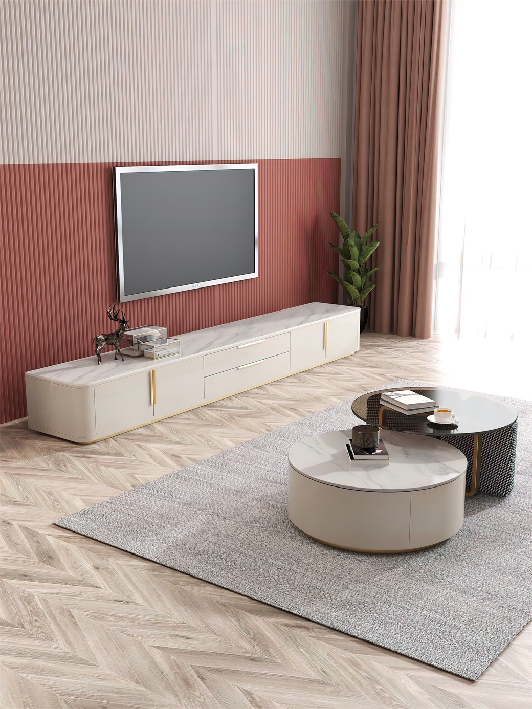 【洛梵】轻奢 MDF面板亮光烤漆+6mm岩板+不锈钢拉手 电视柜