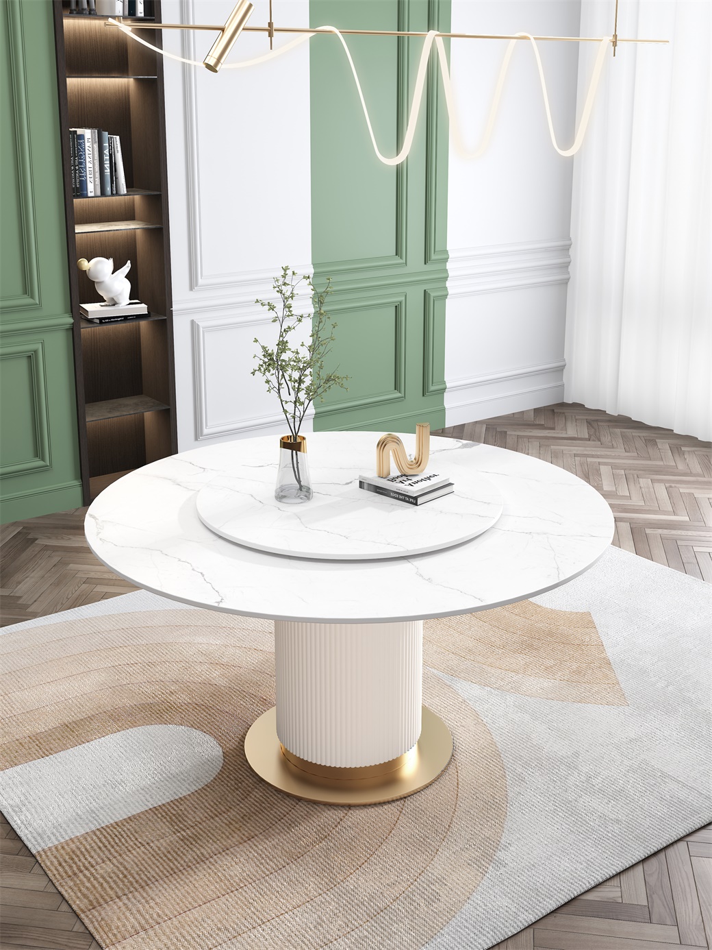 【洛梵】轻奢 不锈钢脚架+亮光岩板 餐桌