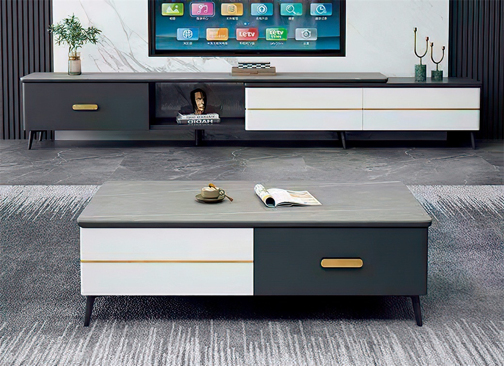 【品上佳】极简 台面:岩板+柜体:密度板和松木结合 茶几