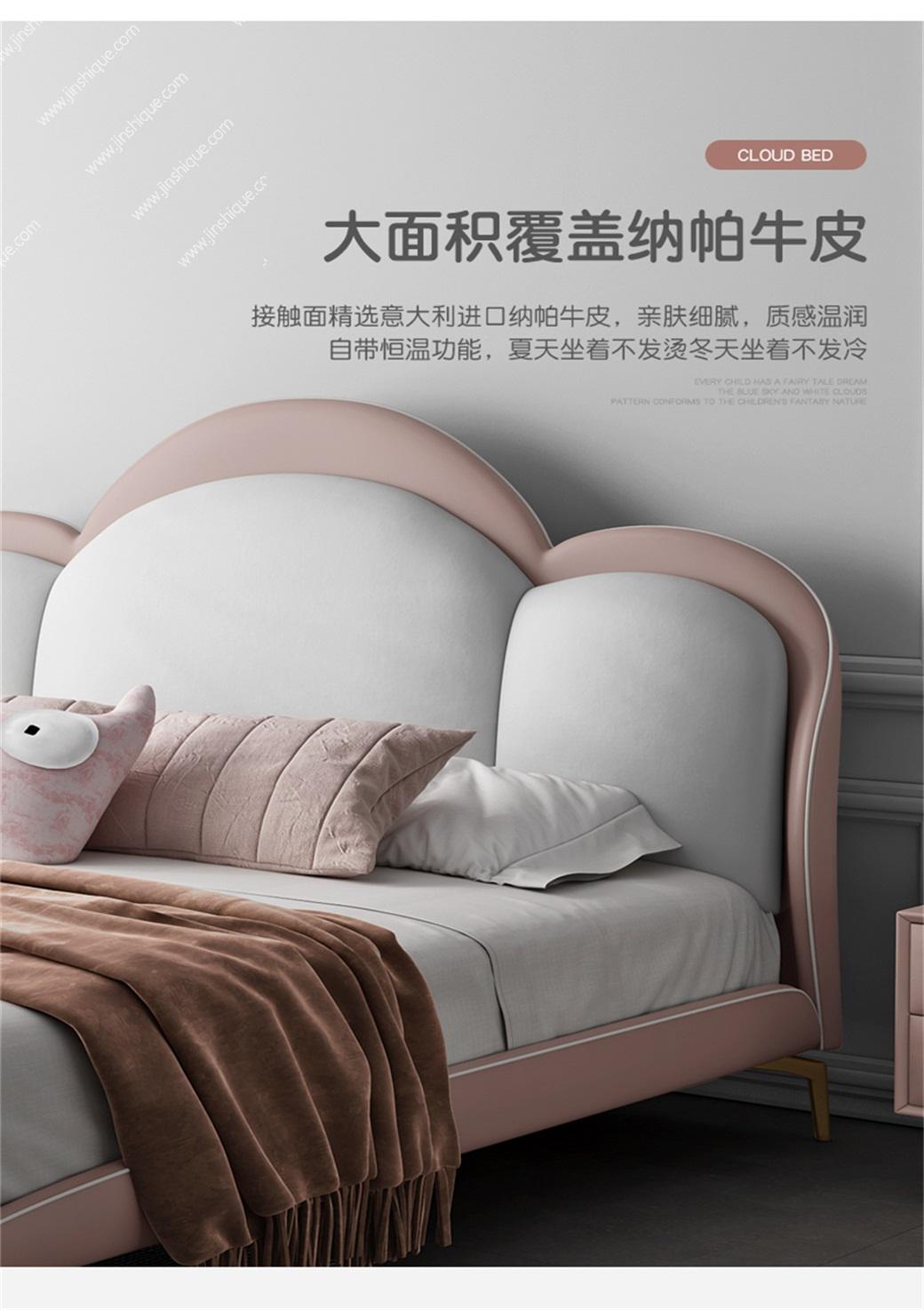 【乐迪】轻奢 接触面仿真皮/科技布+实木内架+高密度海棉+镀金脚 奶油粉+米白色 1.8米床