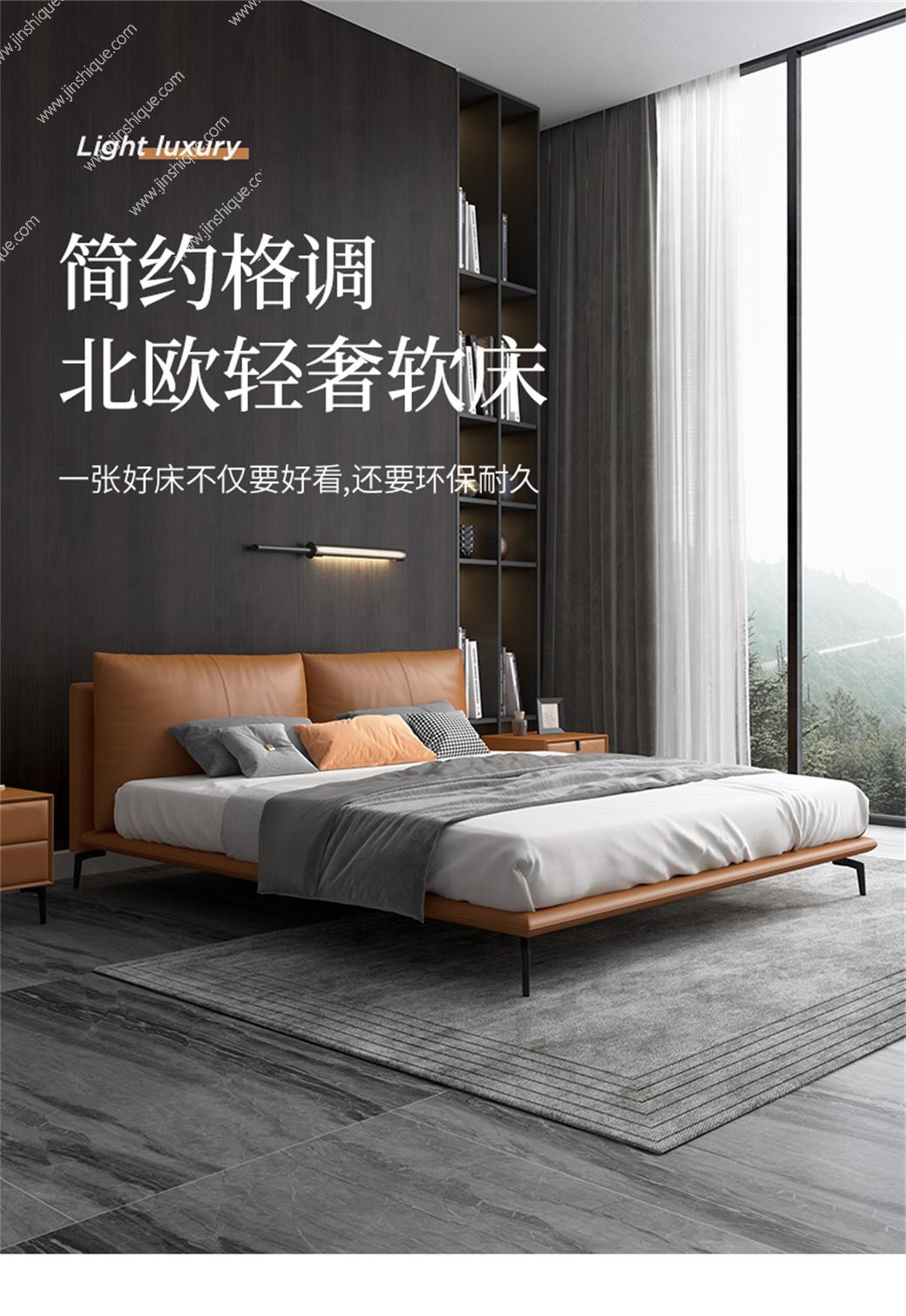 【乐迪】轻奢 接触面仿真皮/科技布+实木内架+羽绒+公仔棉+高密度海棉+镀金脚 奶油粉+米白色 1.5米床