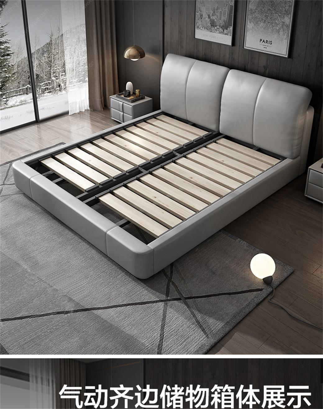 【乐迪】极简 接触面仿真皮/科技布+实木内架+羽绒+公仔棉+高密度海棉+碳素钢脚 1.8米床