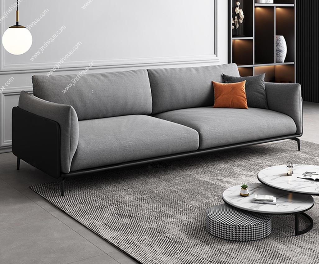 【乐迪】极简 外框超纤皮+意大利进口麻棉面料+高密度海棉+羽绒+实木内架+碳素钢脚 三人位沙发