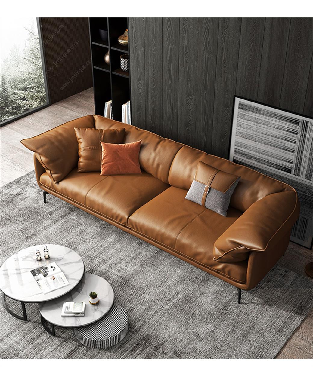 材质:接触面仿真皮+高密度海棉+白鹅羽绒靠包+全实木内架+碳素钢脚
