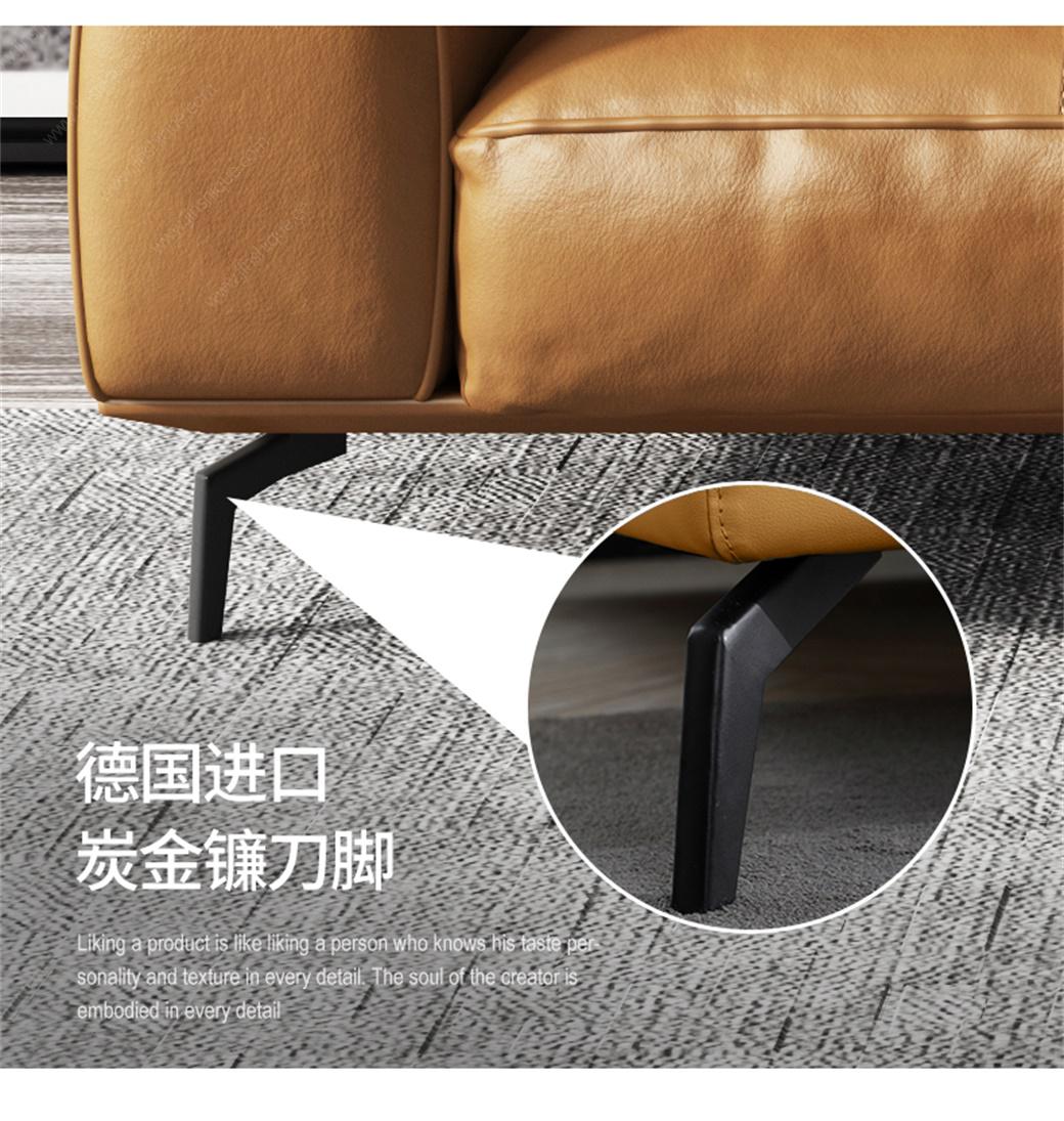 • 接触面仿真皮+高密度海棉+白鹅羽绒靠包+全实木内架+碳素钢脚