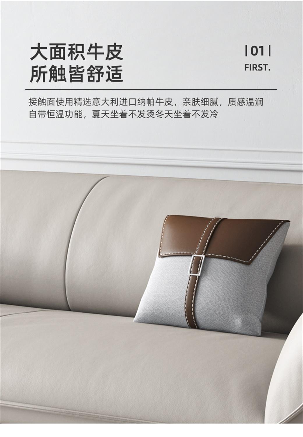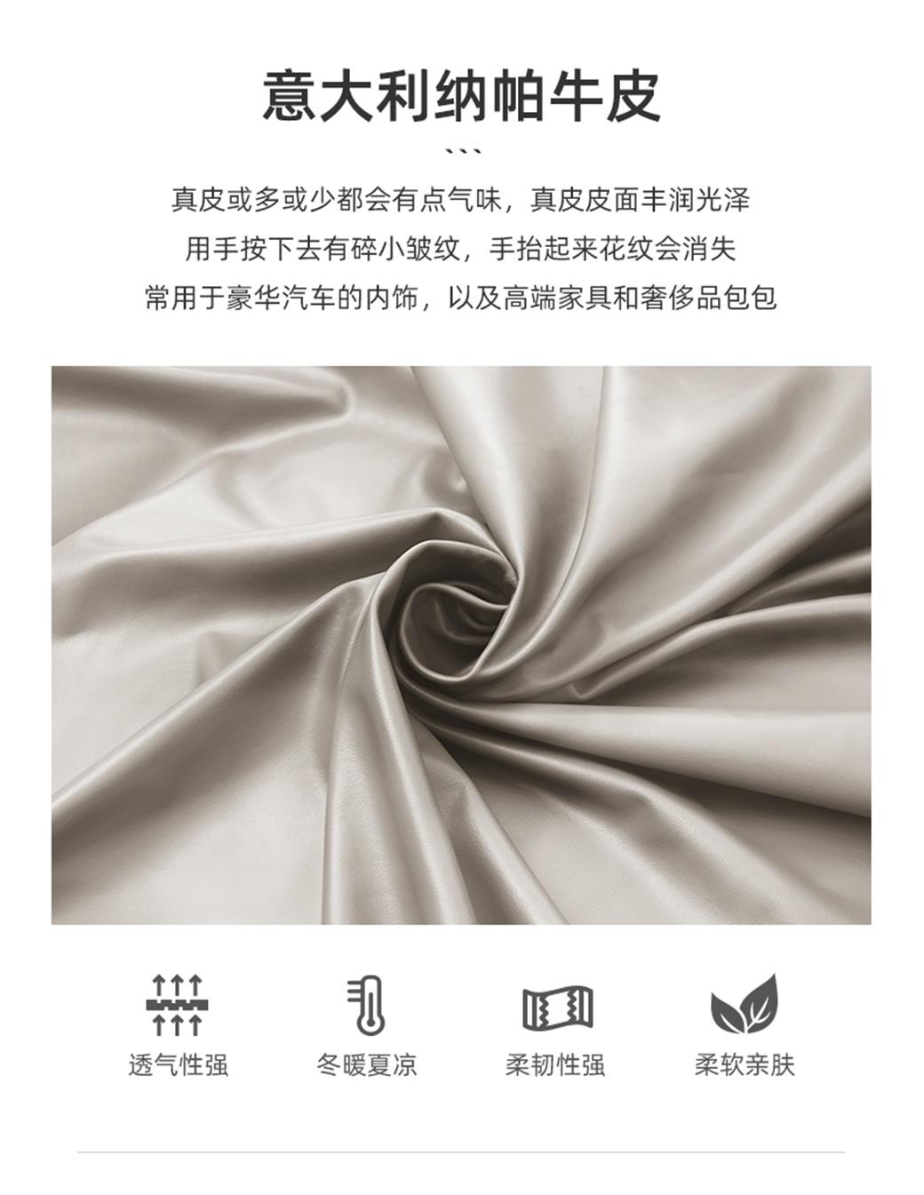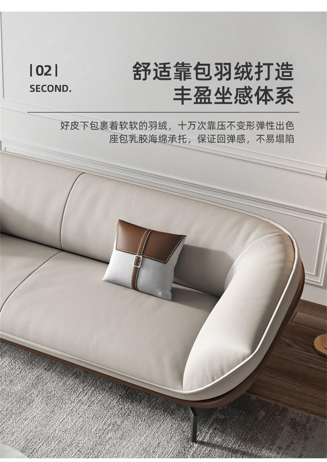 材质:接触面仿真皮+高密度海棉+白鹅羽绒靠包+全实木内架+碳素钢脚