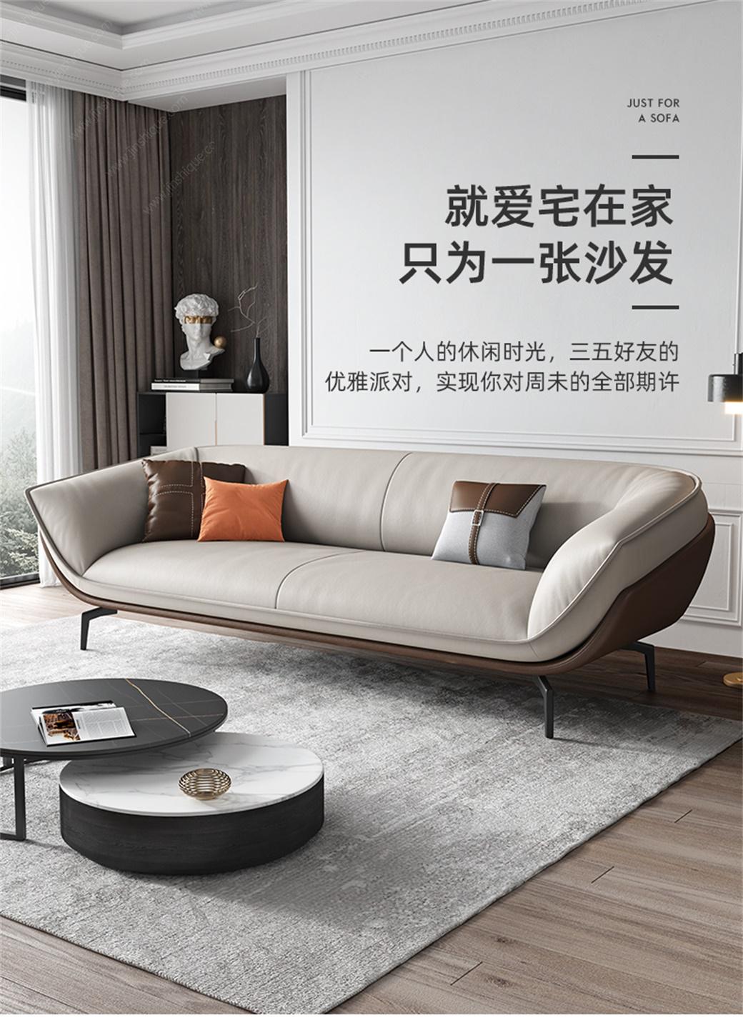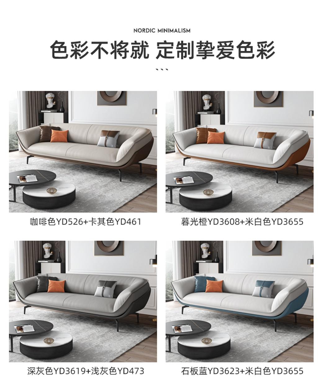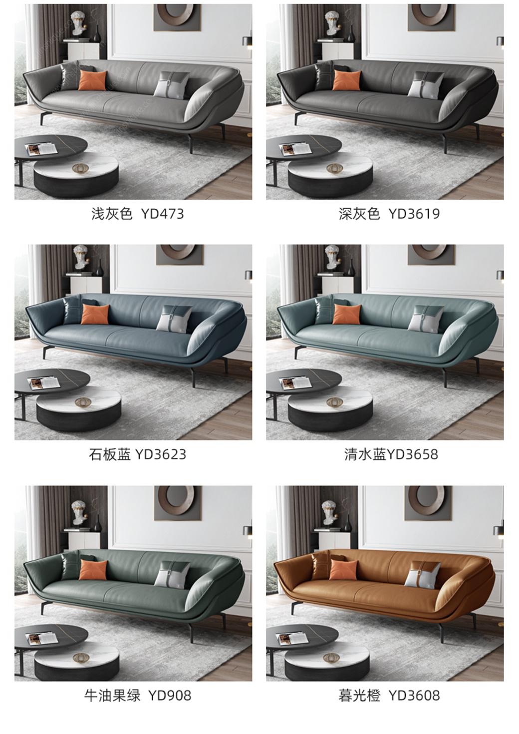 材质:接触面仿真皮+高密度海棉+白鹅羽绒靠包+全实木内架+碳素钢脚