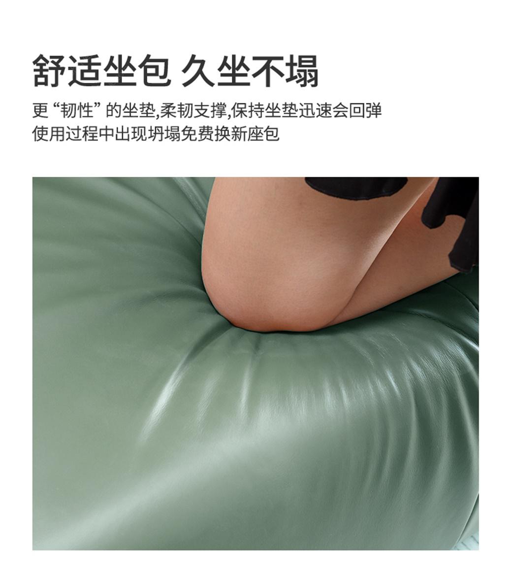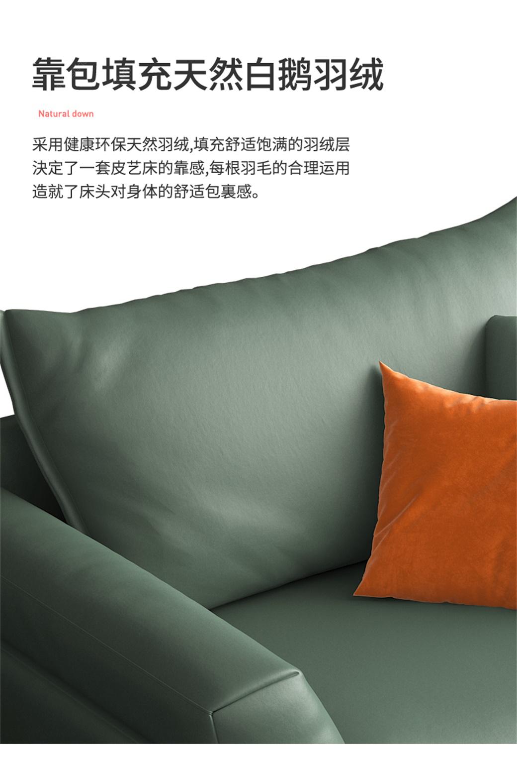 • 接触面仿真皮+高密度海棉+白鹅羽绒靠包+全实木内架+碳素钢脚