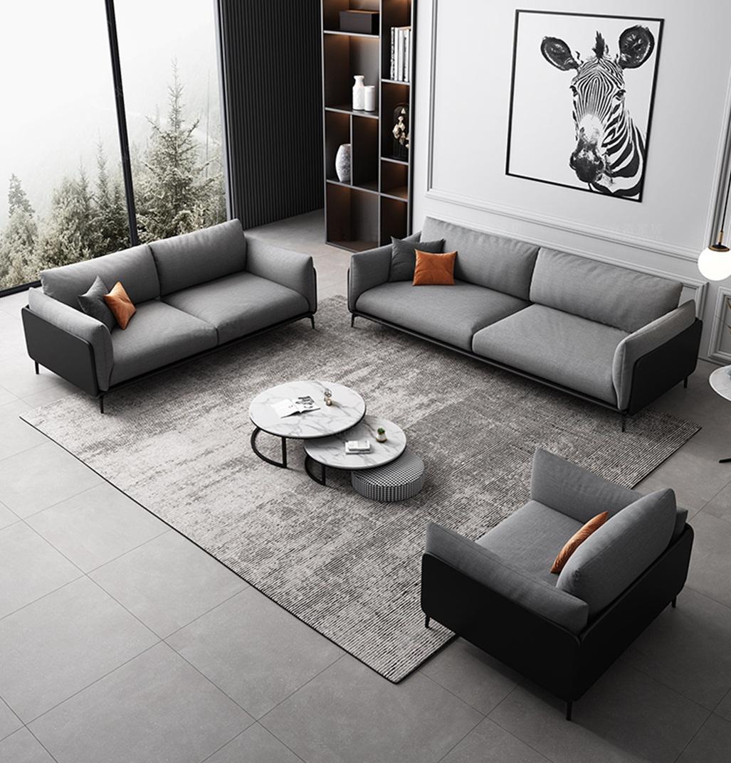 材质:外框仿真皮+意大利进口麻棉面料+高密度海棉+白鹅羽绒靠包+全实木内架+碳素钢脚(只做布+皮)