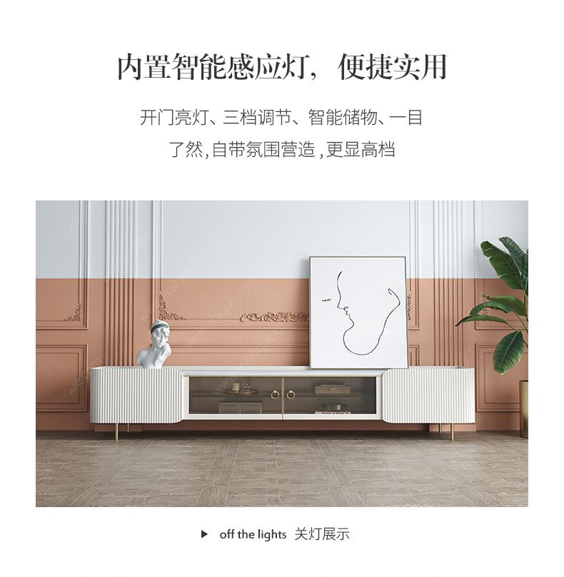 【奢兰蒂】轻奢 岩板+茶色玻璃+水性烤漆+五金镀金+智能调节LED 2.0米电视柜