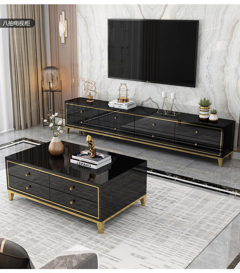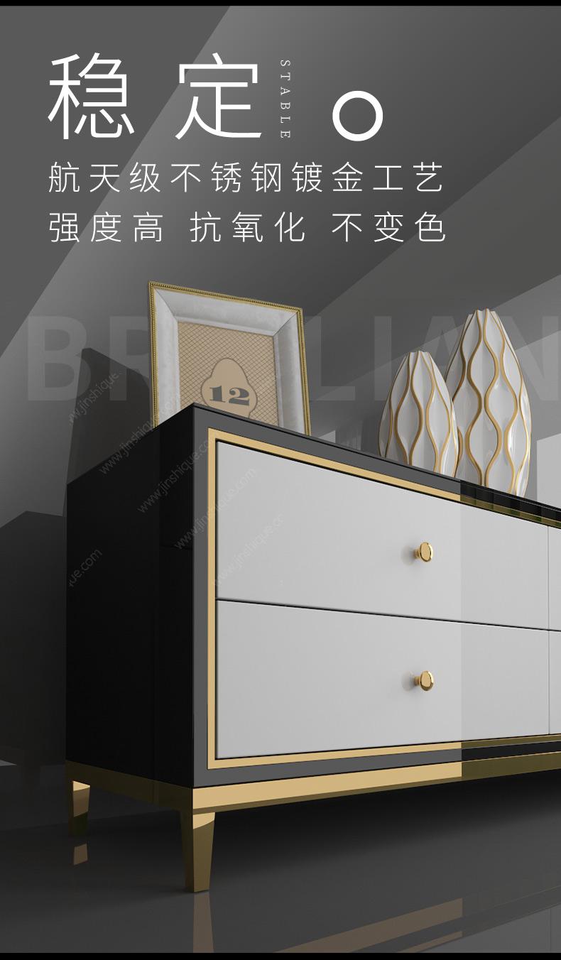 【奢兰蒂】轻奢 不锈钢电镀封油无指纹+黑白亮板烤漆+钢化玻璃 2.2米电视柜5抽