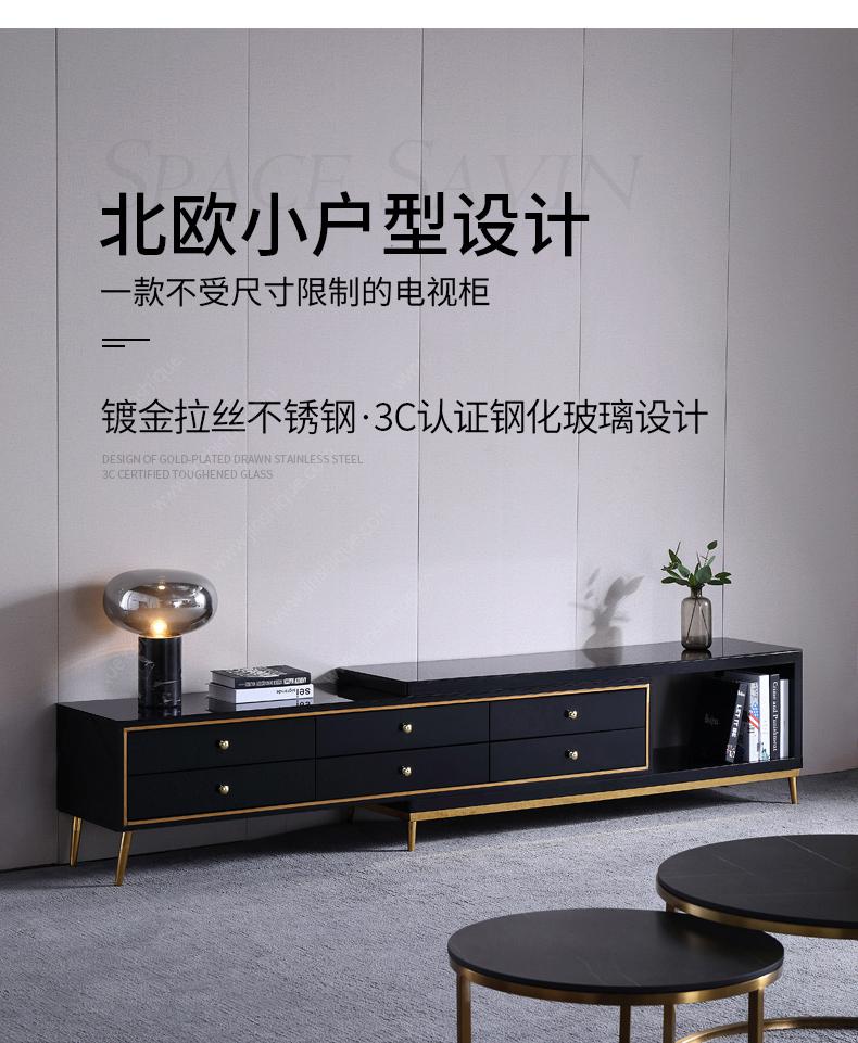 【奢兰蒂】轻奢 E1级密度板+钢琴烤漆+实木+不锈钢拉丝 伸缩电视柜