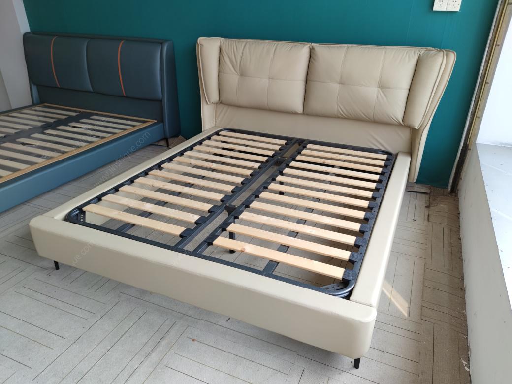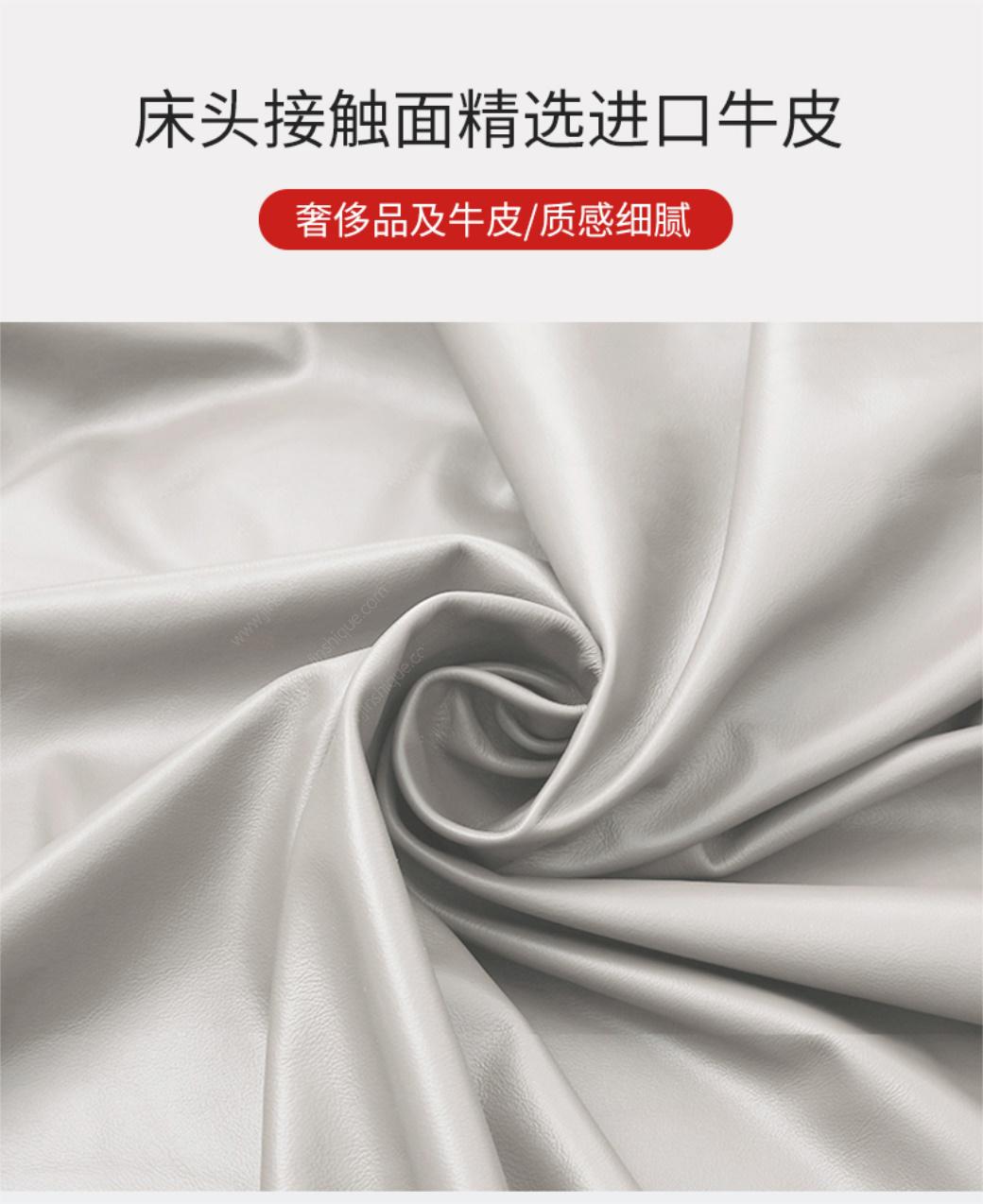 【洛梵】极简 头层真皮+全实木框架+高密度海绵填充+钢木排骨架+黑色脚 1.5米真皮床