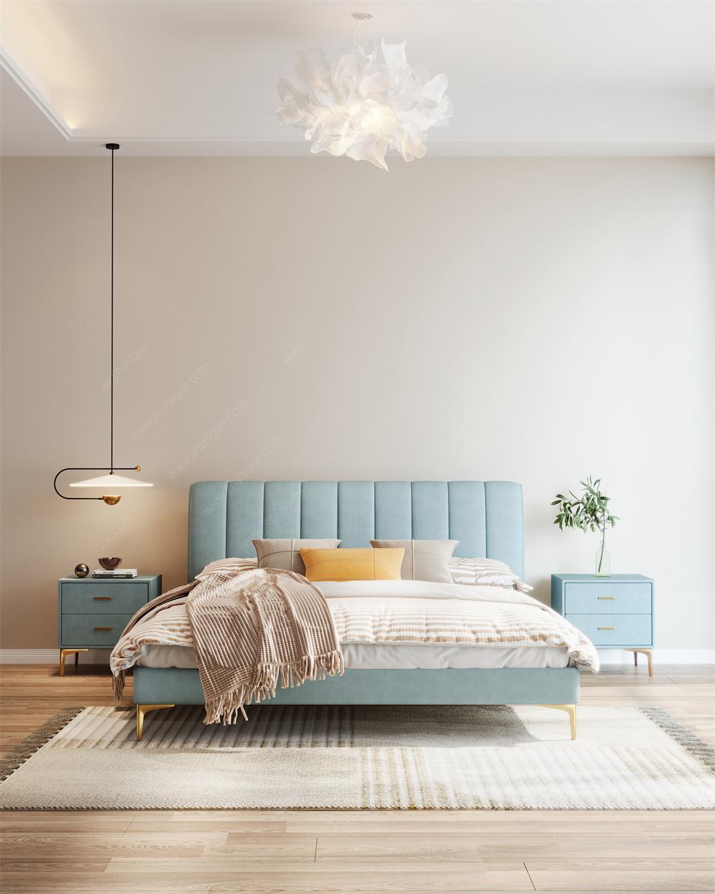 【洛梵】轻奢 接触面德国纳米免洗科技布面料+高密度回弹海绵;实木内框架;不锈钢镀金脚 1.35米床